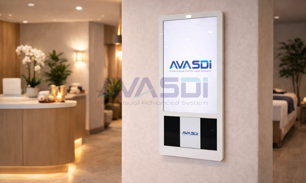 Giải pháp AV tích hợp (Audiovisual) cho trung tâm làm đẹp – spa của AVASDI là hệ thống kết hợp đồng bộ giữa màn hình quảng cáo, màn hình LED, âm thanh, camera và phần mềm quản lý nội dung, được thiết kế phù hợp với môi trường dịch vụ chăm sóc sắc đẹp. Hệ thống giúp spa truyền tải thông tin dịch vụ, liệu trình, hình ảnh thương hiệu một cách trực quan, đồng thời tạo không gian thư giãn, dễ chịu cho khách hàng.